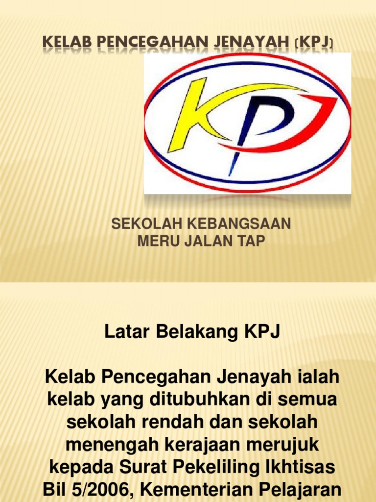 Kelab pencegahanjenayah latar belakang kpj kelab pencegahan jenayah ialah kelab yang ditubuhkan di semua sekolah rendah dan sekolah menengah kerajaan merujuk kepada surat pekeliling ikhtisas bil 5/2006, kementerian pelajaran malaysia. Lagu kelab pencegahan jenayah sekolah. Latar belakang kpj kelab pencegahan jenayah ialah kelab yang ditubuhkan di semua sekolah rendah dan sekolah menengah kerajaan merujuk kepada surat pekeliling ikhtisas bil 5/2006, kementerian pelajaran malaysia. Selamat datang ke blog rasmi kpj skcsd. Bahawa kami akan berusaha menjadi ahli yang sentiasa mematuhi.