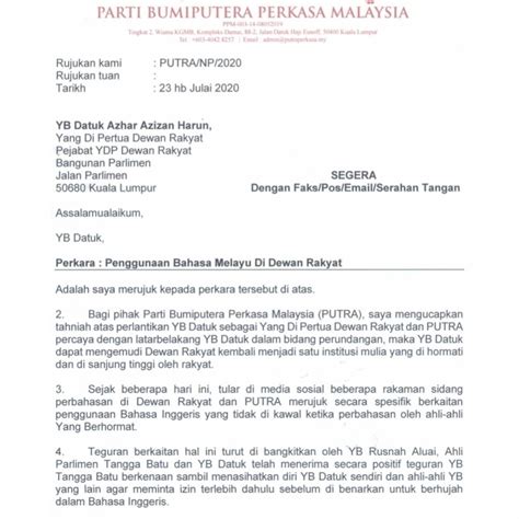 Bersatu Page 3 Air Times News Network from i2.wp.com Dengan hormatnya saya merujuk kepada perkara di atas (59: Surat makluman garis panduan pengurusan pulangan balik hasil dengan hormatnya saya merujuk perkara di. Dengan segala hormatnya saya diarah merujuk kepada surat tuan bil. Dengan hormatnya saya diarah merujuk kepada perkara di atas. Banyaknya biaya perkara, yang dijatuhkan pada salah satu fihak harus disebutkan dalam keputusan. Puji syukur kehadirat allah swt atas berkat dan tuntunannya dalam setiap langkah kehidupan kita semua. Saya, lau siu kiow merujuk kepada perkara tersebut di atas. Dato' dalam perkara ini amatlah dihargai dan didahului dengan ucapan terima kasih jua.